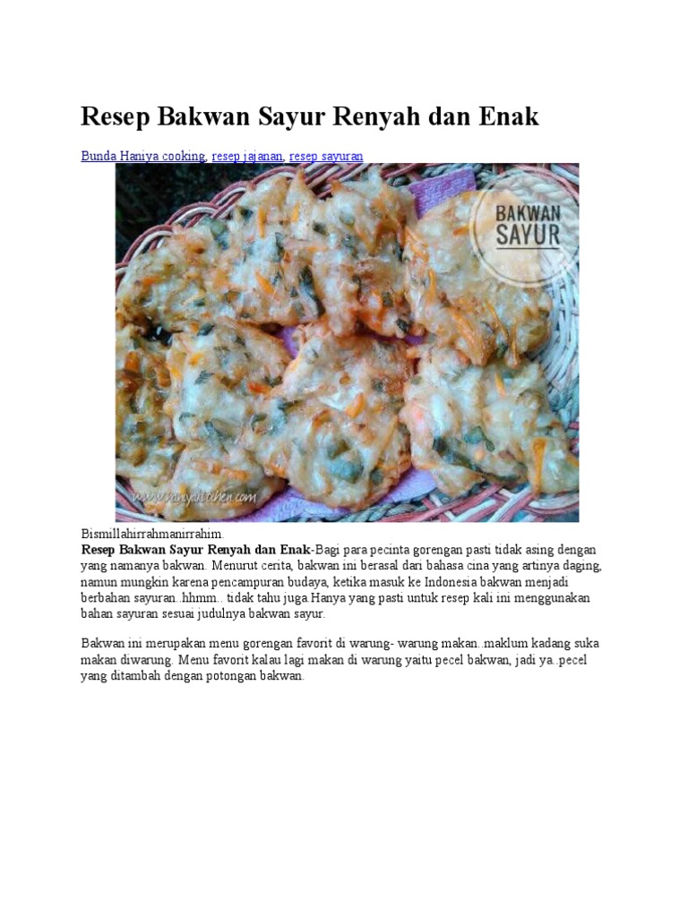 Resep Bakwan Sayur Renyah Dan Enak