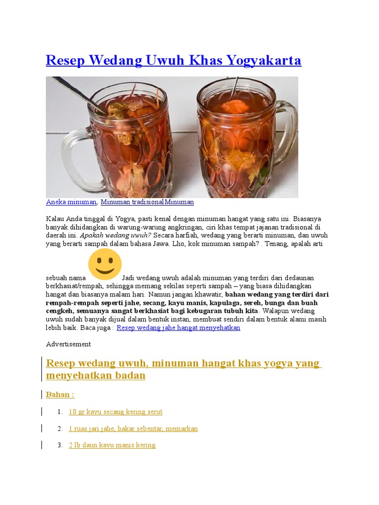 Resep wedang uwuh khas yogyakarta dan cara membuatnya. Wedang adalah kata dalam bahasa jawa yang berarti minuman sedangkan uwuh berarti. Sekarang anda sudah tahu tentang resep wedang uwuh dan cara membuat wedang.