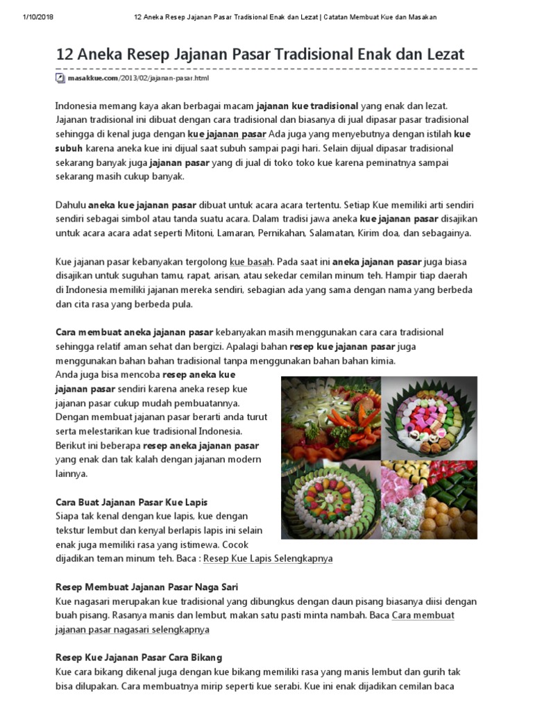 Resep jajanan pasar tradisional indonesia. Bukan hanya alam dan kebudayaannya tetapi juga kulinernya. Hasil pencarian untuk jajanan pasar tradisional. Lihat juga resep kue tradisional nagasari enak lainnya.