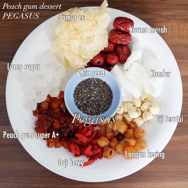 Peach gum white fungus jamur es kurma merah ang co goji berry lotus seed biji teratai 20 gram gula kundur gula batu longan kering lynns. Resep peach gum dessert favorit. Setelah mengembang bersihkan kotoran bilas dengan air tiriskan.