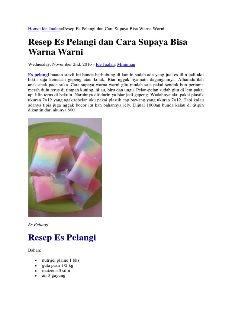 Resep Es Jelly Pelangi Jual Harga 500 Rupiah Untuk Ide